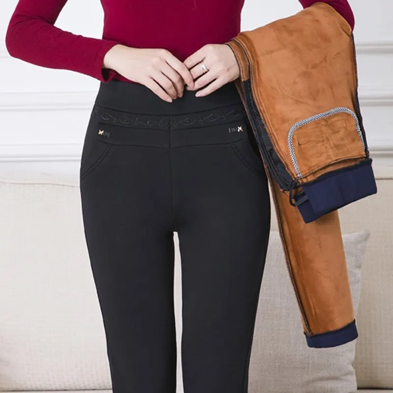 HIGH QUALITY Women High Waist Straight Pants Full Length Winter Warm Fitness Trousers Plus Size 3XL 4XL 5XL 6XL