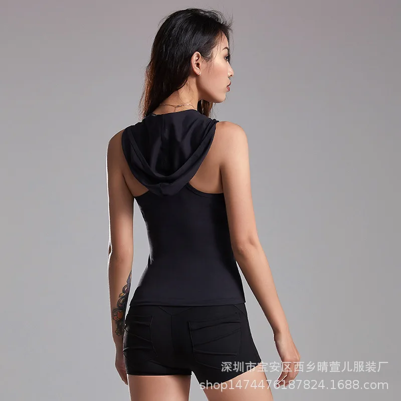 Beauty Back Sexy Sports Vest Women's Hooded Sleeveless Yoga Clothes Elasticity Tights I-shaped Runn
