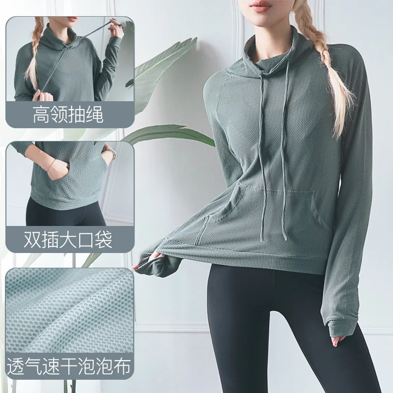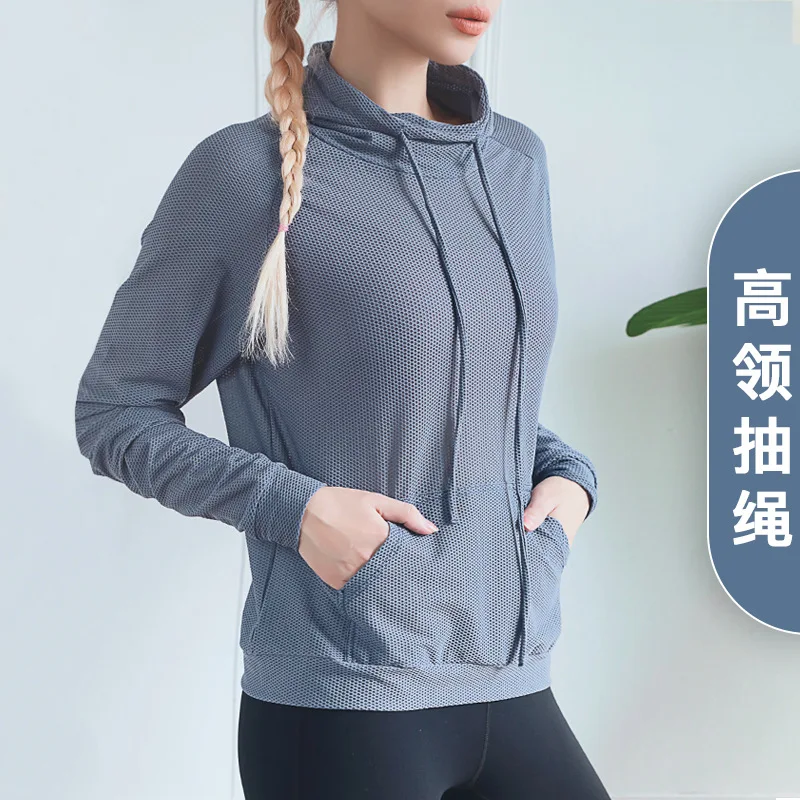 Review Top 2019 New Style Europe And America Mesh Breathable Fitness Yoga Clothes Women's High Collar Drawstri